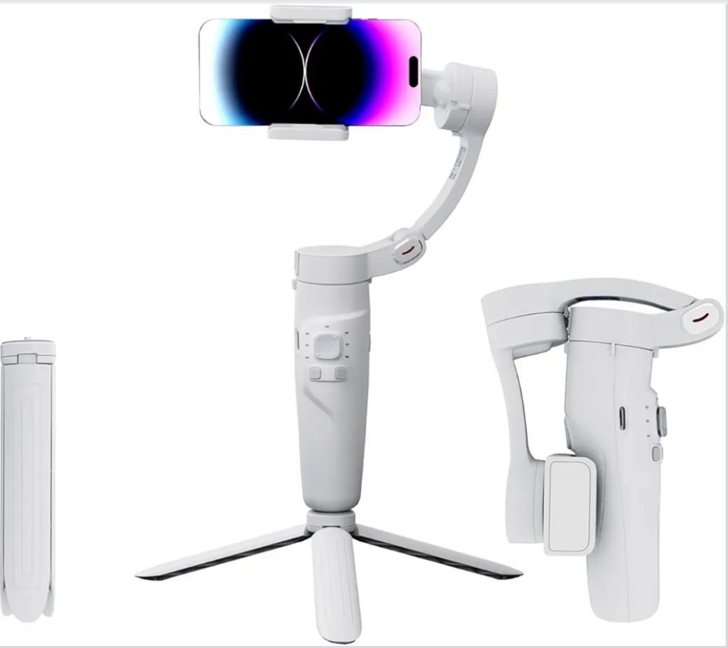 Professional 3-axis mobile gimbal stabilizer for ultra-smooth video shooting and photography. Perfect for vlogging, reels, YouTube, travel shooting & live streaming. Foldable design, long battery backup, tripod support & Bluetooth control.