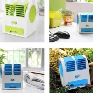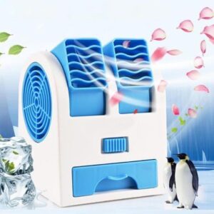 Mini Dual Blade Portable Air Cooler Fan | USB Powered Personal AC Cooler | Cooling With Ice Tray | Table Fan for Home & Office