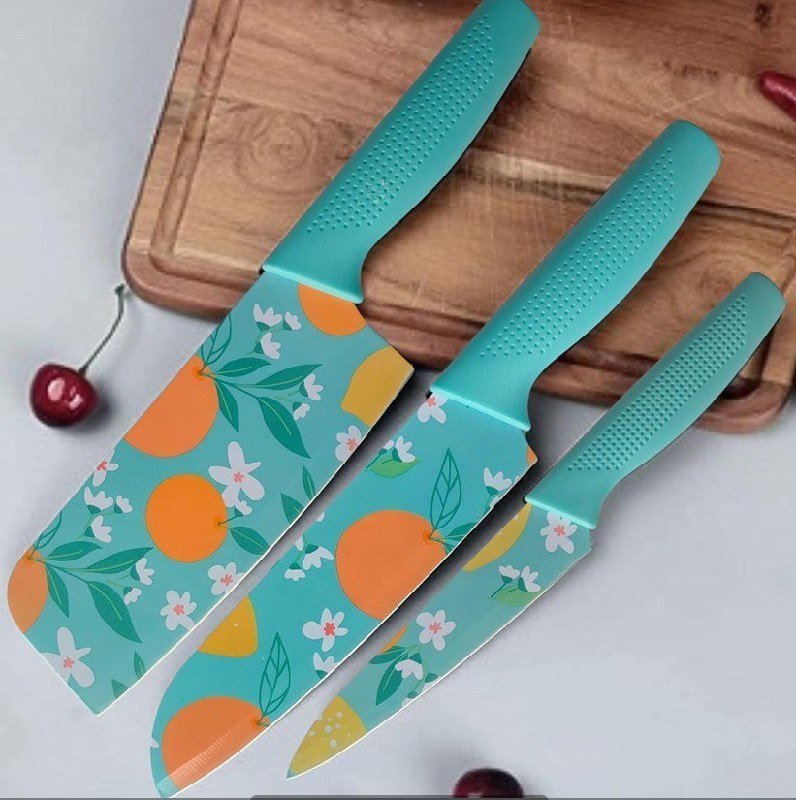 Upgrade your kitchen with this stylish and super sharp 3 Pcs Printed Stainless Steel Knife Set.