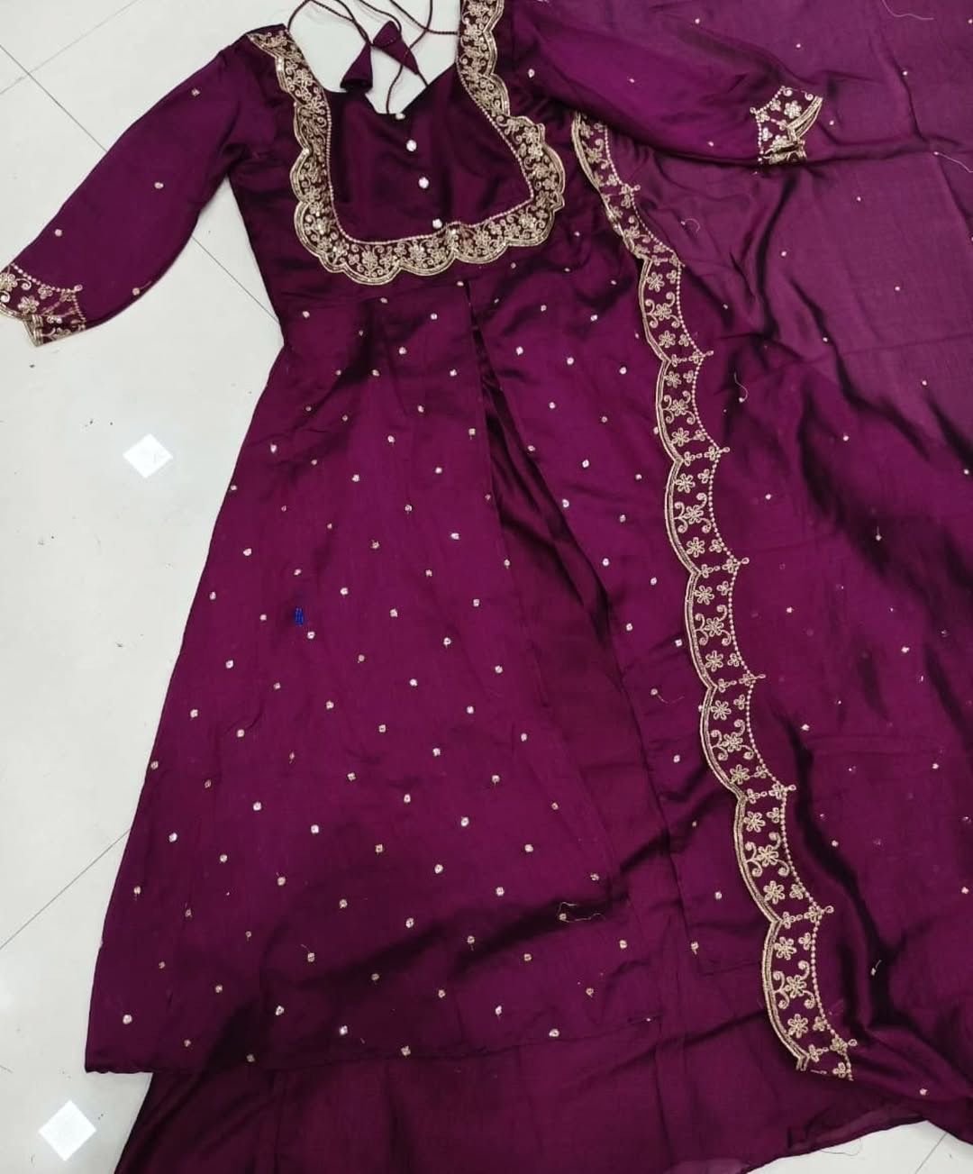 💃 Elegant Maroon Heavy Embroidery Anarkali Gown