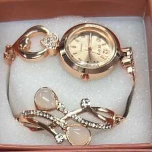 Women Stylish Bracelet Watch Combo Set – Premium Rose Gold Designer Watch with Matching Bracelet | Party & Gift Collection