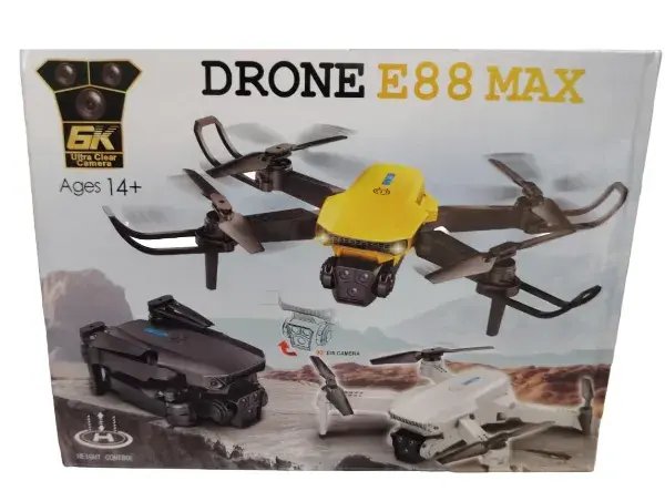 Explore the sky with the Drone E88 MAX Foldable Quadcopter, designed for beginners and drone enthusiasts. Equipped with an HD camera, this drone lets you capture clear aerial photos and videos for fun and casual filming.