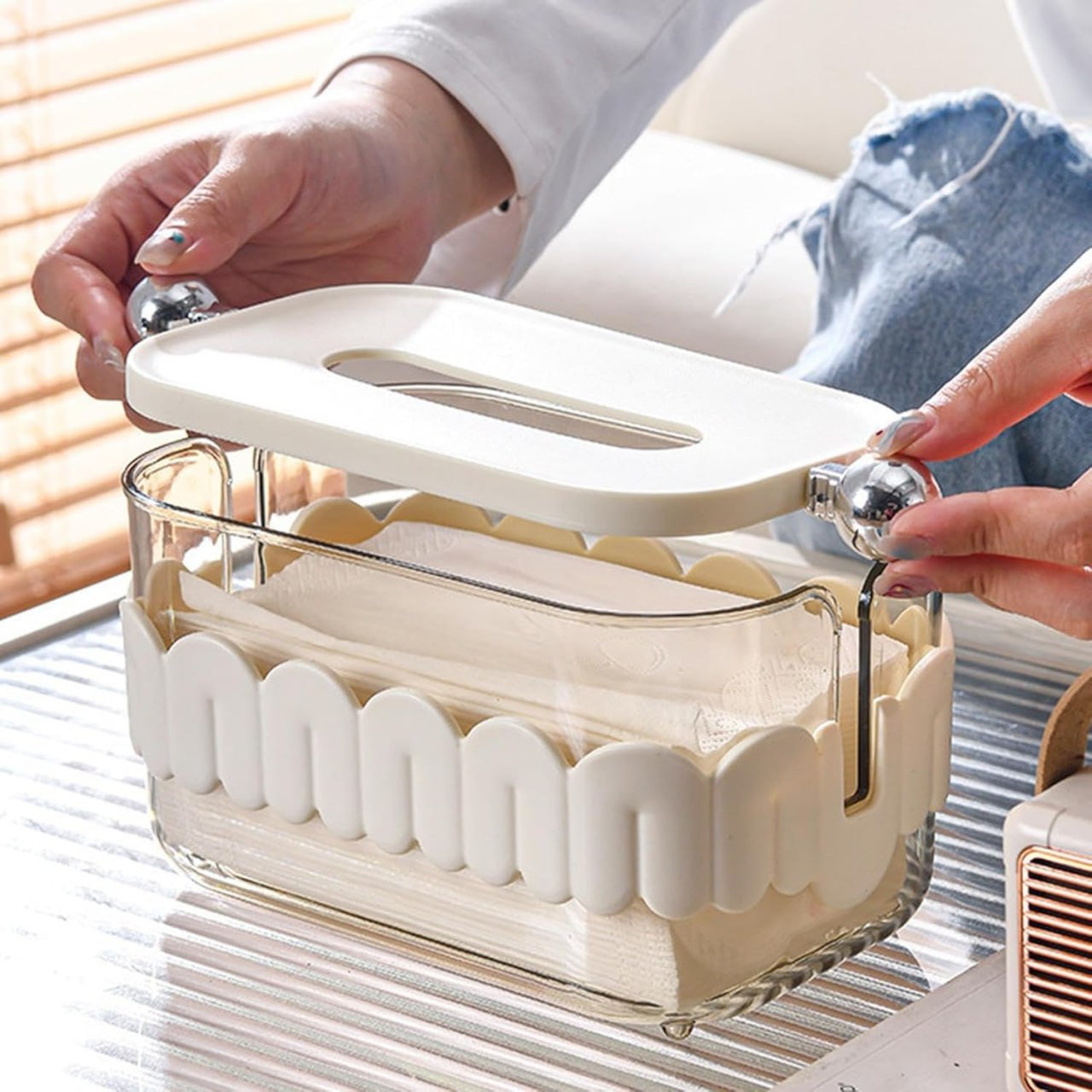 Keep your tissues neat, clean, and beautifully organized with this Elegant Tissue Paper Storage Box.