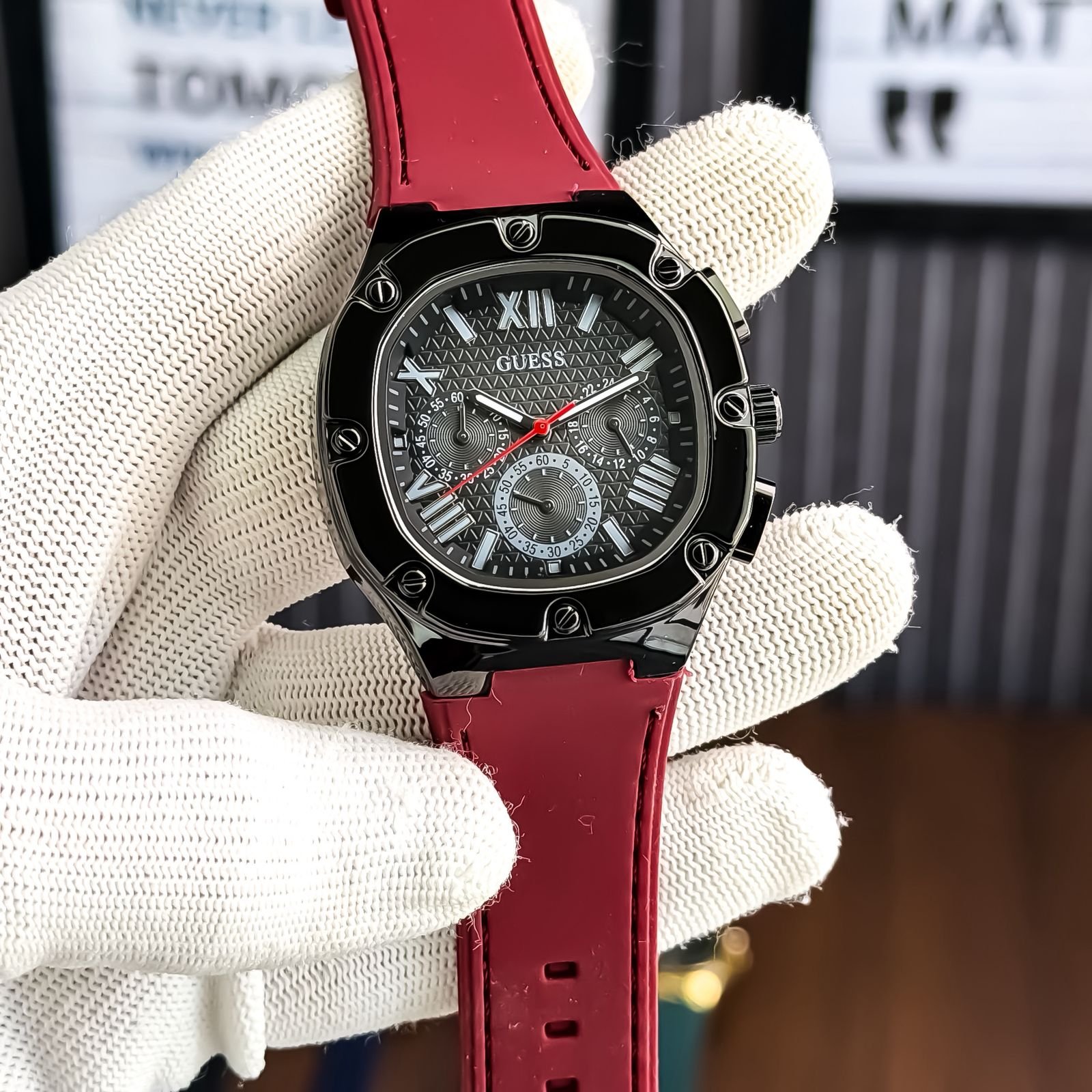 Make a bold style statement with this luxury chronograph-style watch, designed for those who love a strong and modern look.