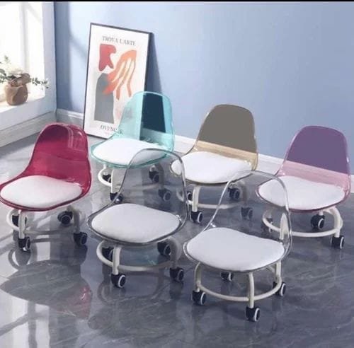 Bring style and comfort together with this modern transparent low-floor chair. Designed with a smooth rolling base, premium cushioned seating, and stylish transparent backrest, it is perfect for study rooms, offices, salons, makeup rooms, kids’ rooms and home interiors. Lightweight, strong and easy to move anywhere!