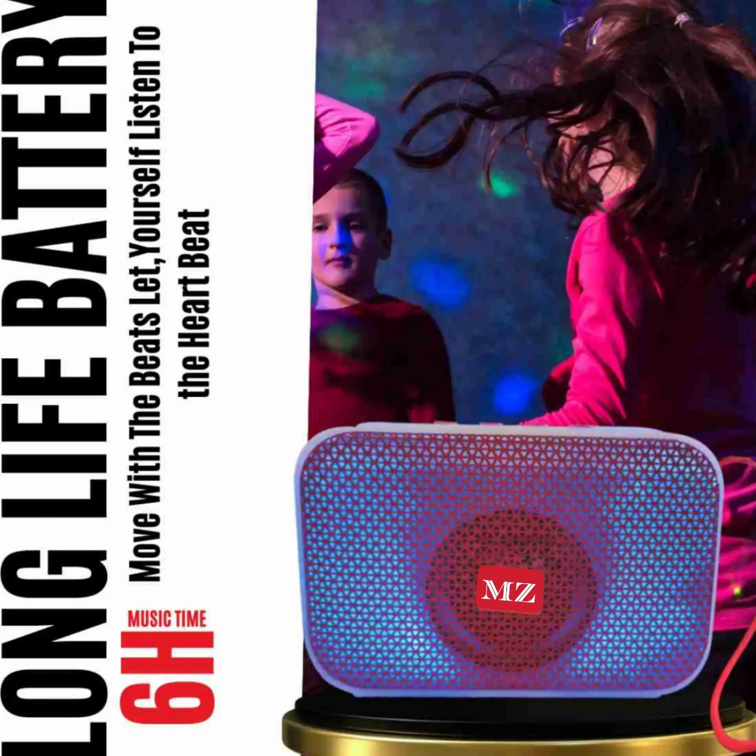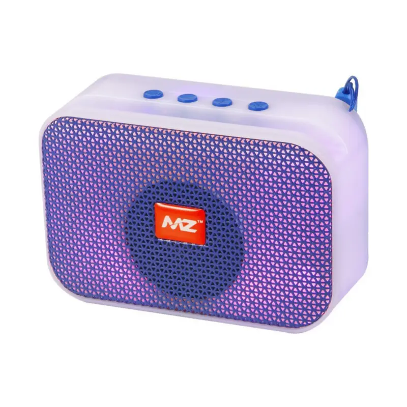 The MZ M412SP Portable Bluetooth Speaker delivers high-quality sound with powerful bass in a compact design. Built with vibrant multi-color LED lights, it creates a party atmosphere wherever you go. With wireless Bluetooth connectivity, you can easily connect your smartphone, tablet, or laptop and enjoy uninterrupted music.