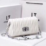 Home Fashion & Textiles Handbags Premium Designer Women’s Quilted Party Clutch – Luxury PU Leather Evening Shoulder Bag with Metal Chain & Diamond Lock – Whiteoduct