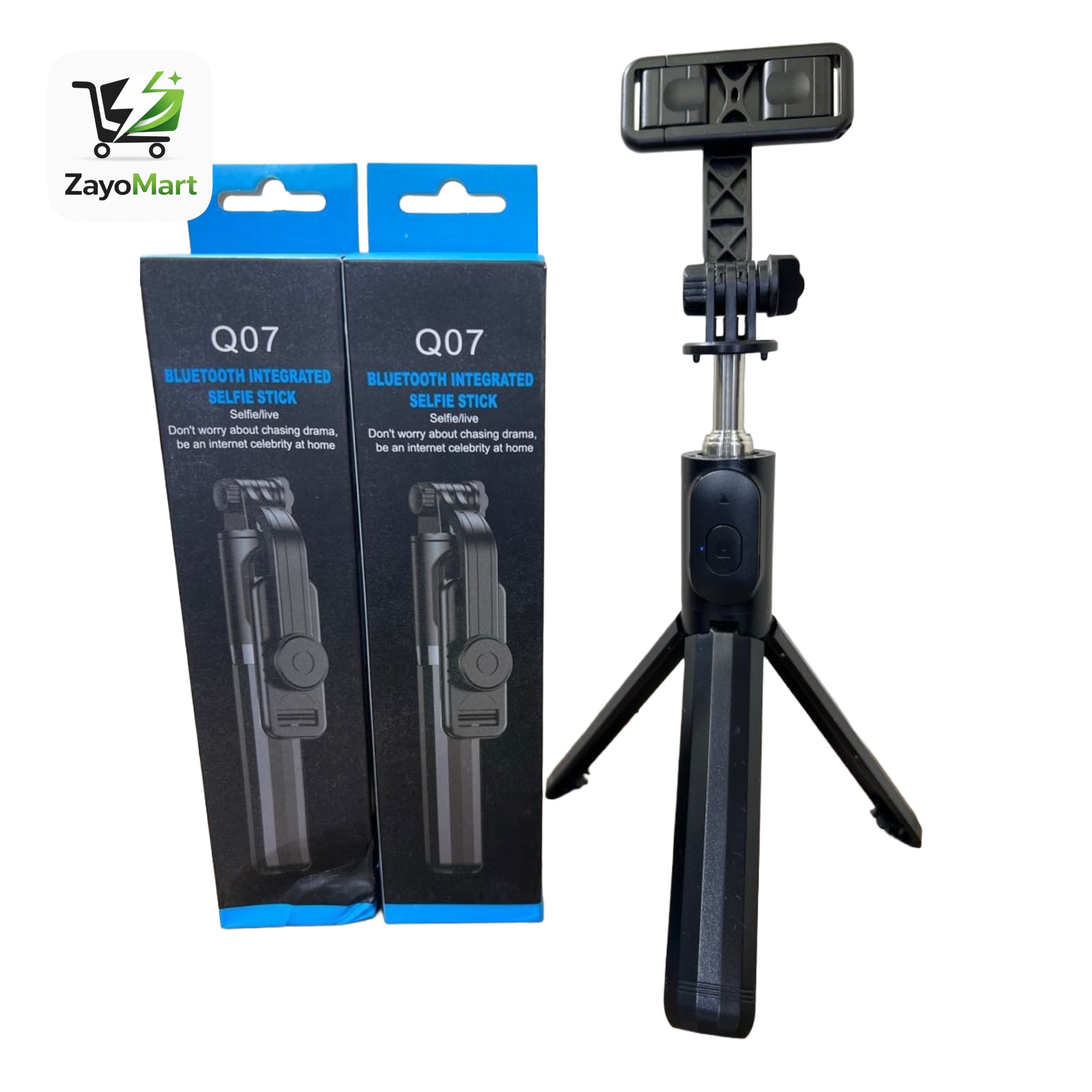 Upgrade your photography experience with the Q07 Bluetooth Integrated Selfie Stick – a 3-in-1 multifunction device designed for selfies, group photos, video recording, live streaming, and content creation.