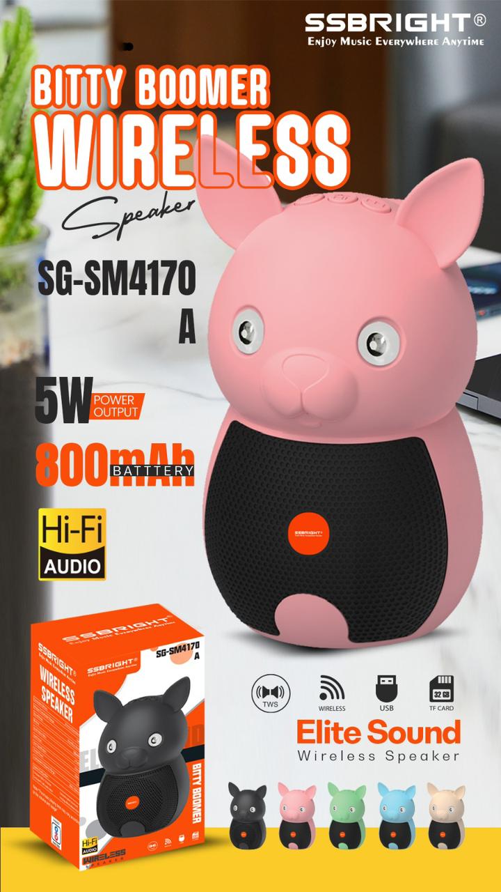 Bring fun and music together with the SSBRIGHT SG-SM4170A Bitty Boomer Wireless Speaker, featuring a cute pet-style character design and premium Hi-Fi sound quality. With 5W power output, enjoy loud and crystal-clear music anywhere.