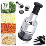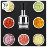 The strong stainless steel blades ensure sharp and precise cutting, while the easy push mechanism makes it simple to operate. Just press down to chop — no electricity required. Its transparent container allows you to monitor the chopping level easily.