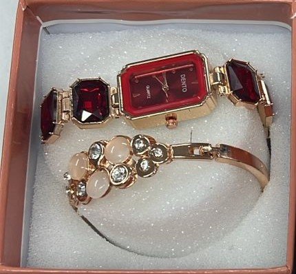 Be the first to review “Stylish Bracelet Watch Combo Set – Premium Red Dial Quartz Watch with Matching Crystal Bracelet | Party & Gift Set” Cancel reply