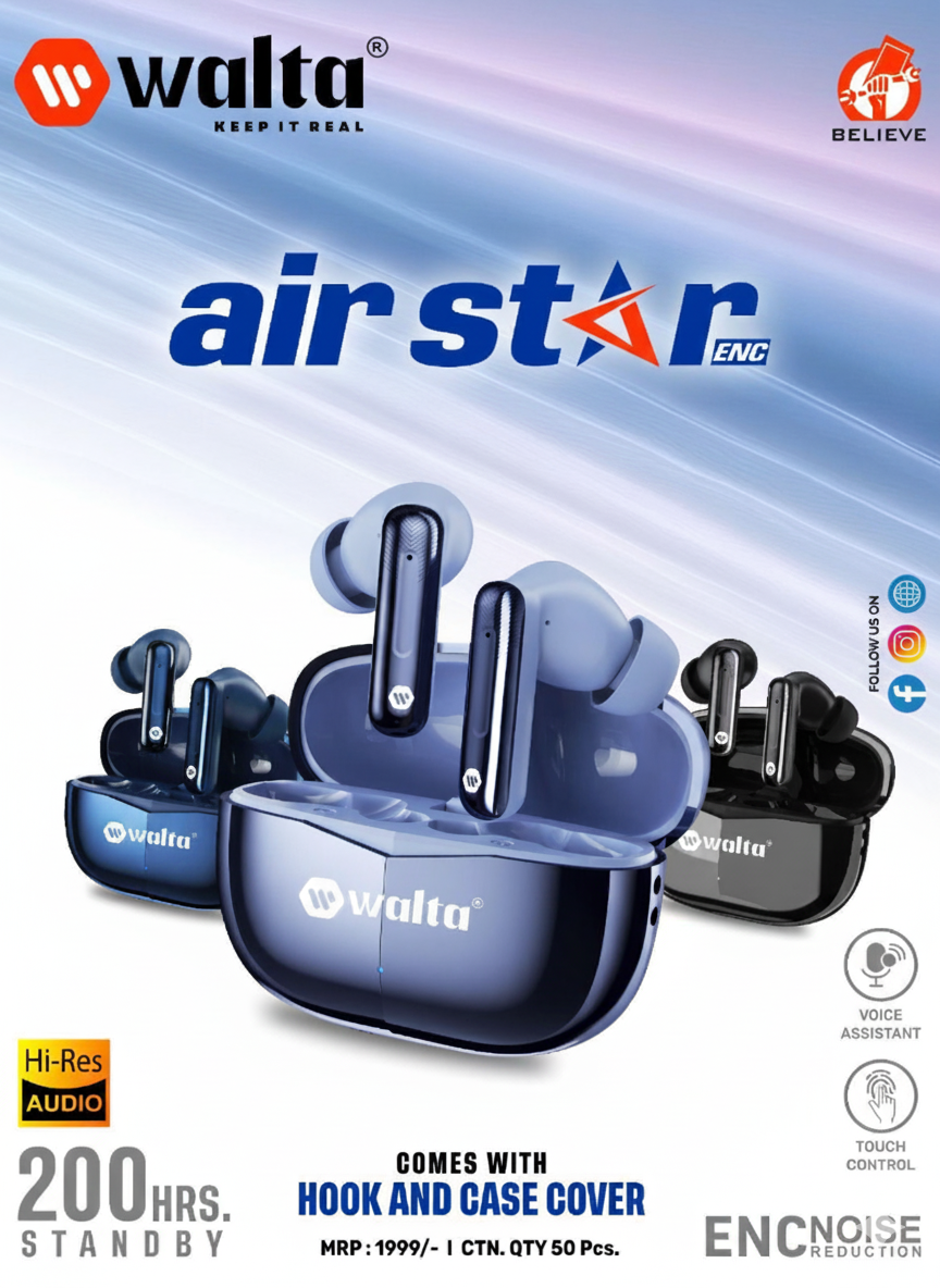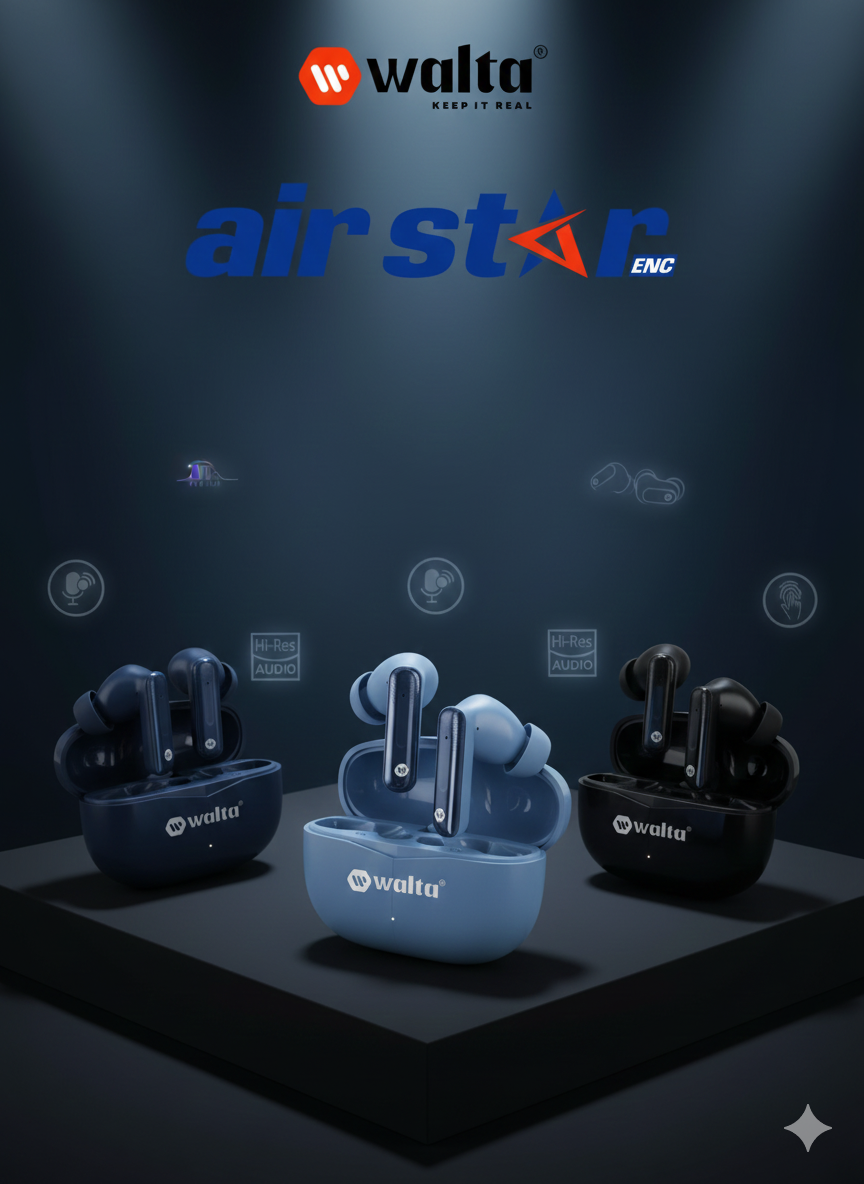 Upgrade your listening experience with WALTA Air Star ENC True Wireless Earbuds, crafted for powerful sound, clear calls and premium style. With Hi-Res Audio and ENC noise reduction, enjoy immersive music and interruption-free conversations anytime, anywhere.