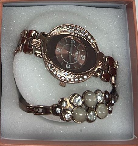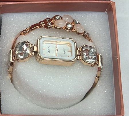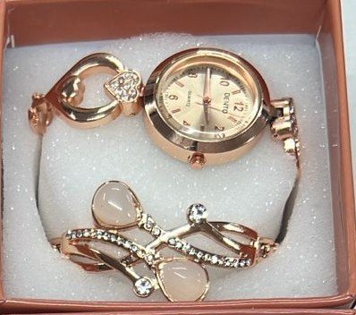 Elegant rose gold designer watch + matching premium bracelet – perfect for party wear, wedding functions, daily fashion & gifting. Stylish look, comfortable wear, premium gift box packing.